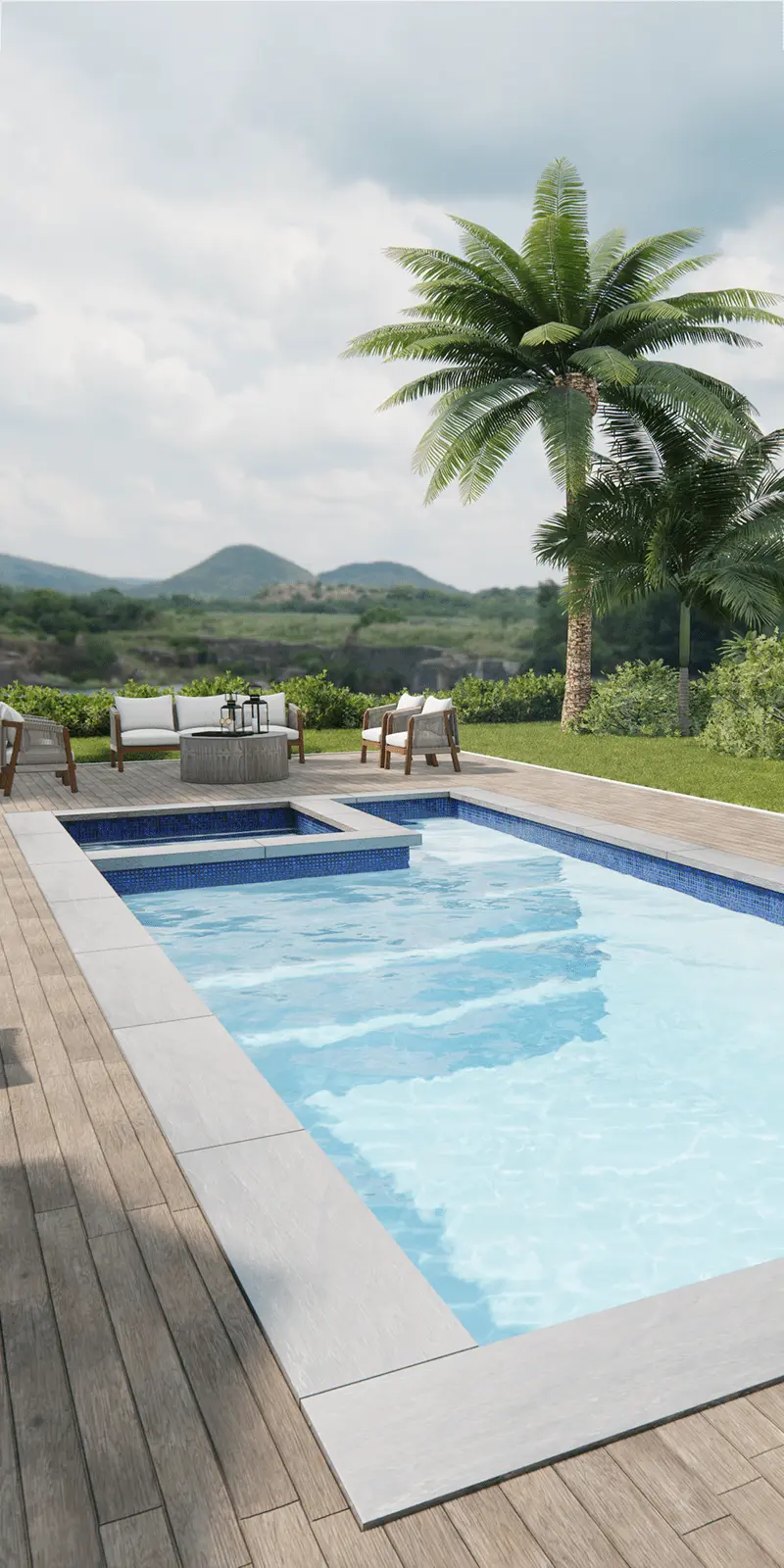 Costa Esmeralda A 33-foot fiberglass pool with tanning ledge and elegant waterline tiles. View Details