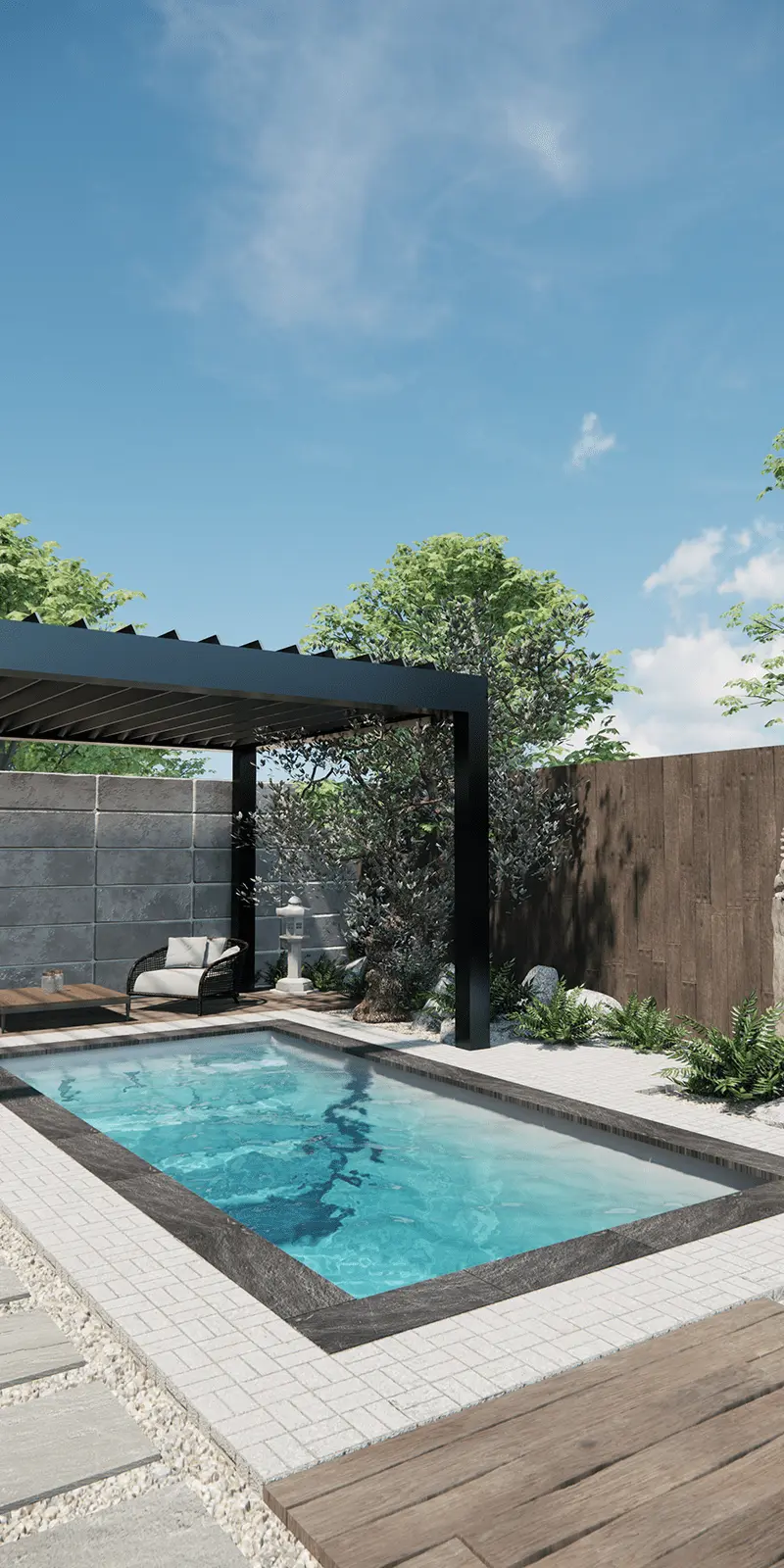 Cozumel A 23-foot fiberglass pools with a modern style and a perfect fit for elegant backyards. View Details