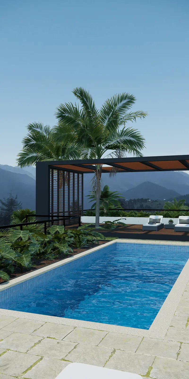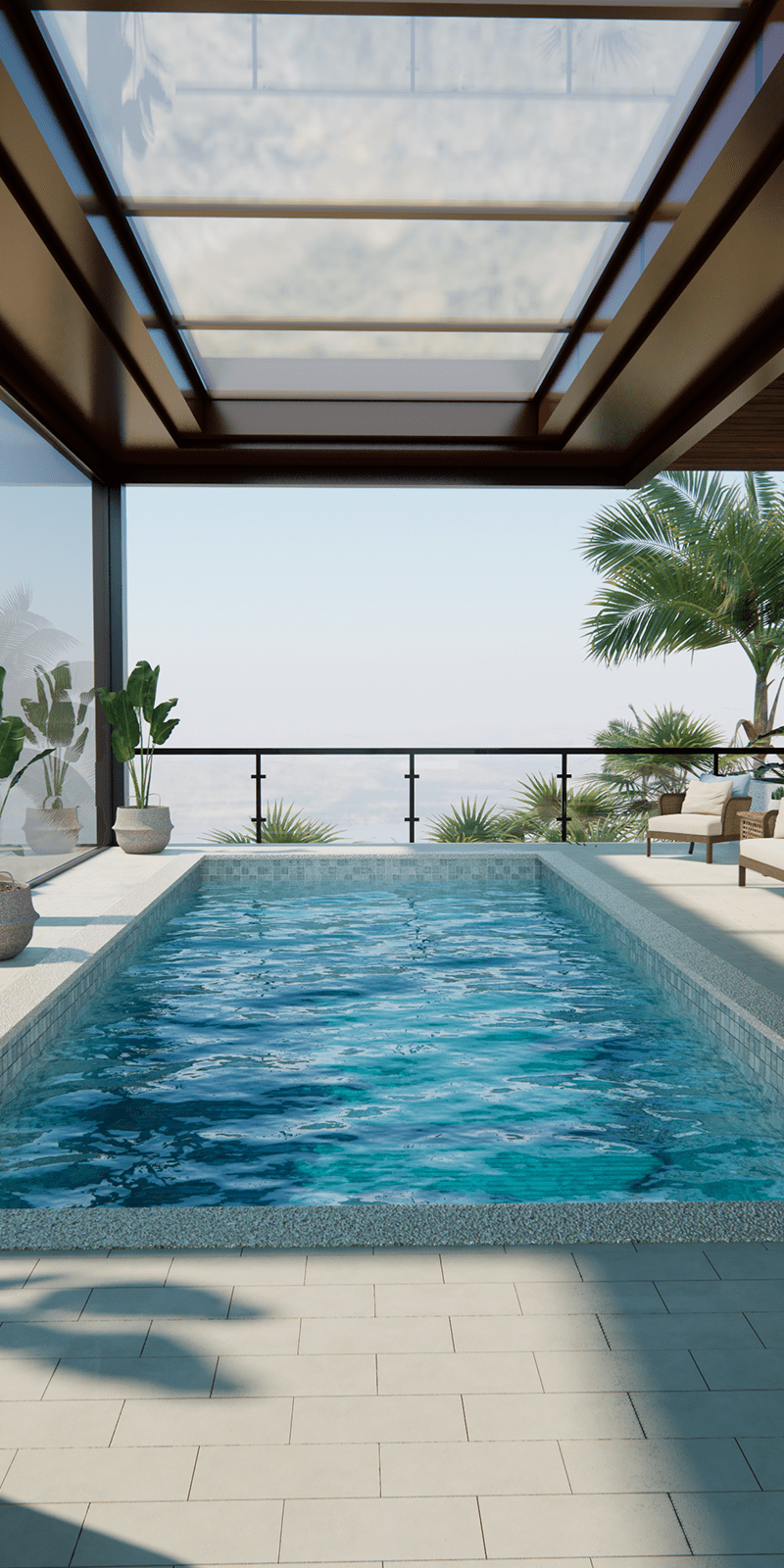 A 20-foot tiled pool that captures the essence of balanced luxury.
