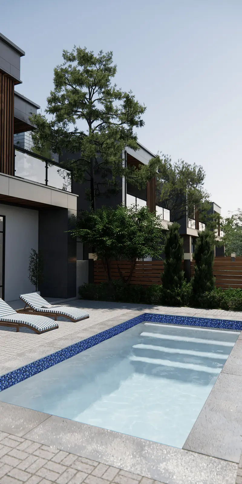 Cozumel A 23-foot fiberglass pool with a modern style and perfect fit for compact backyards. View Details