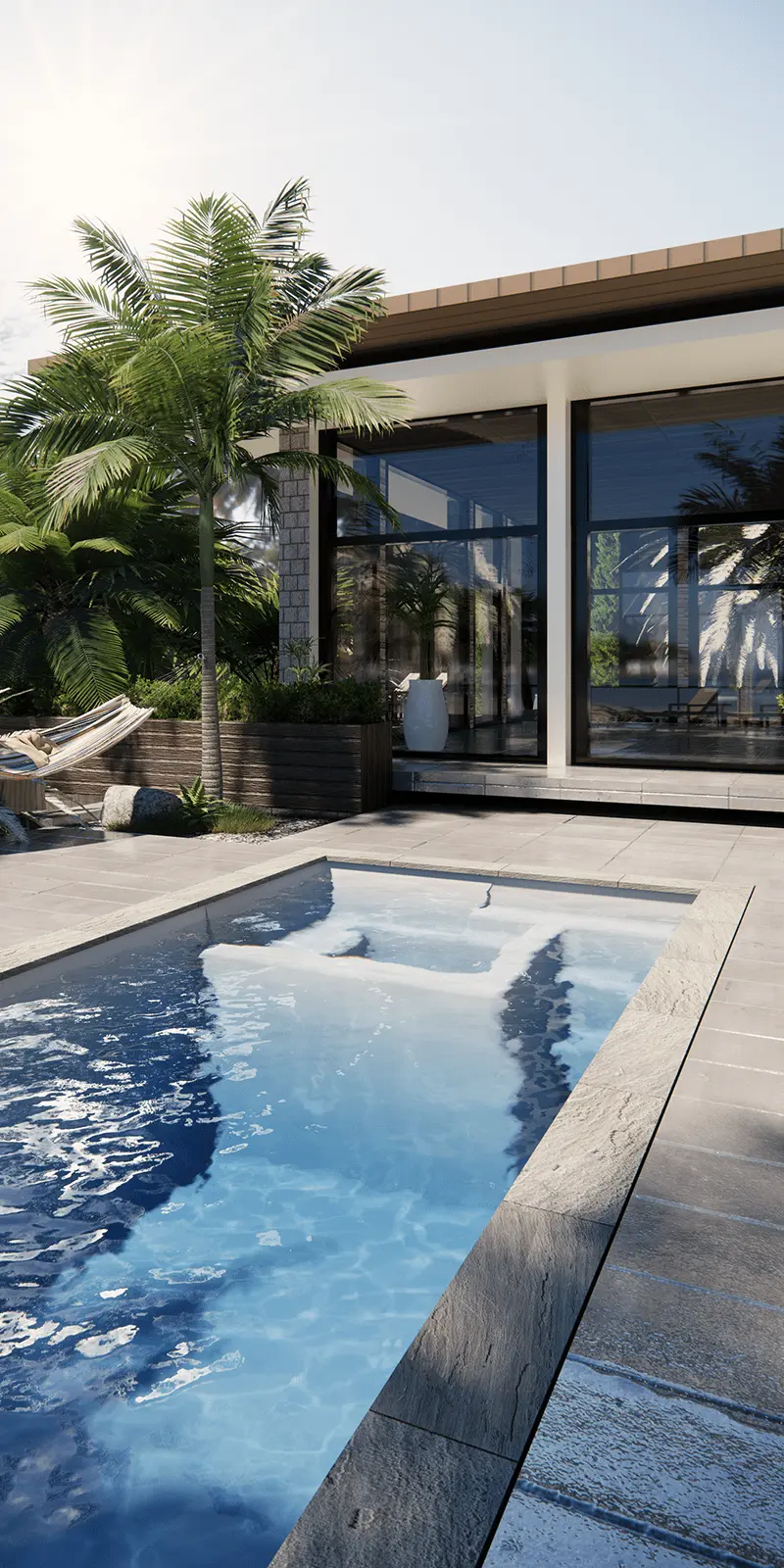 Atalaia A luxury 29-foot fiberglass pool with built-in spa, tanning ledge, and premium porcelain waterline tile. View Details