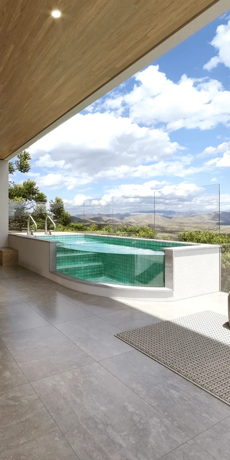A modern 13-foot tiled pool.