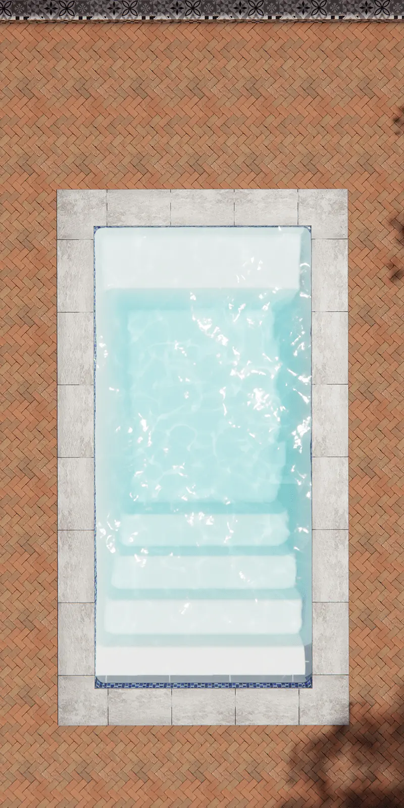 A 10-foot fiberglass pool offers modern elegance, durable and easy maintenance.