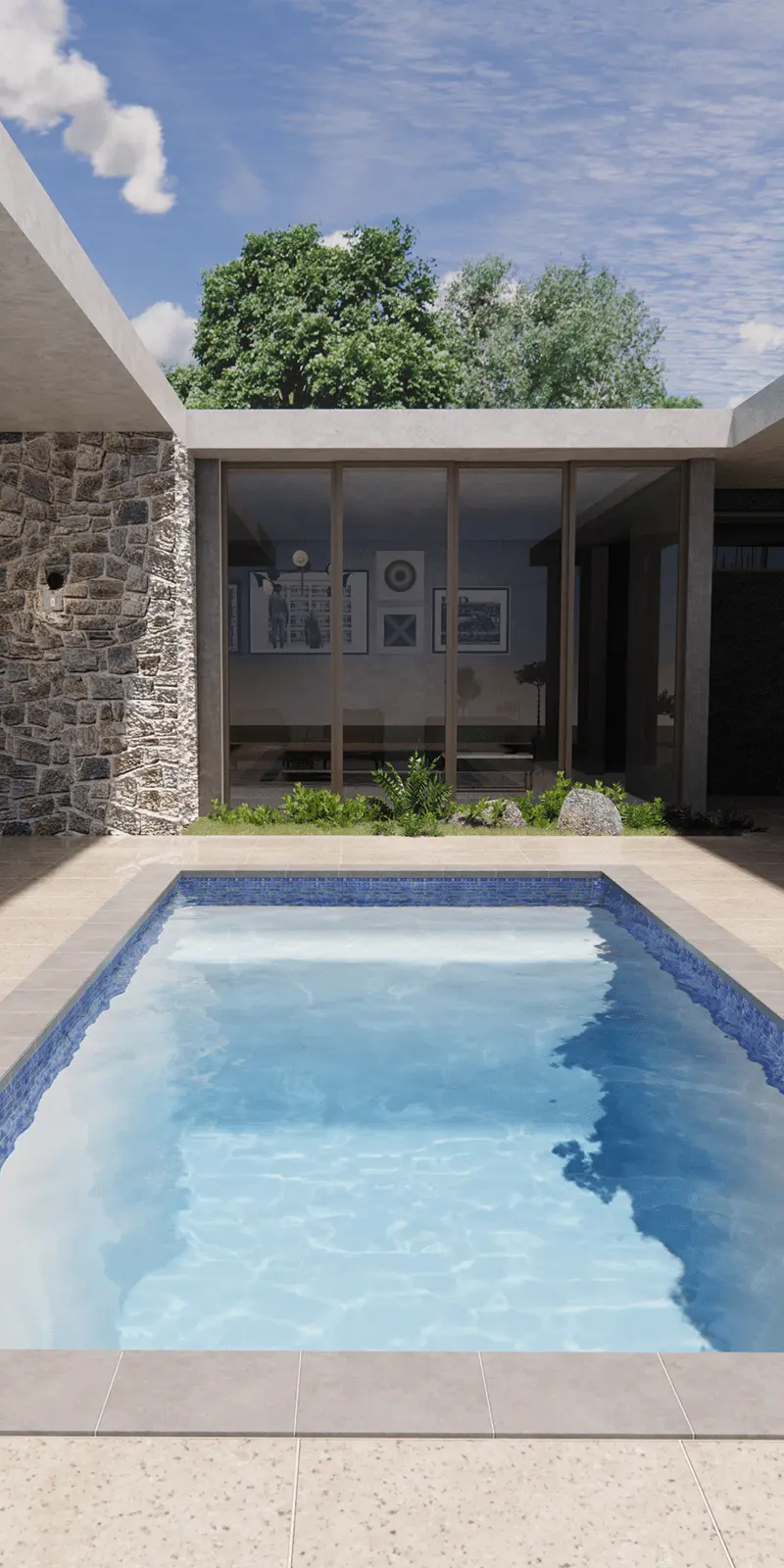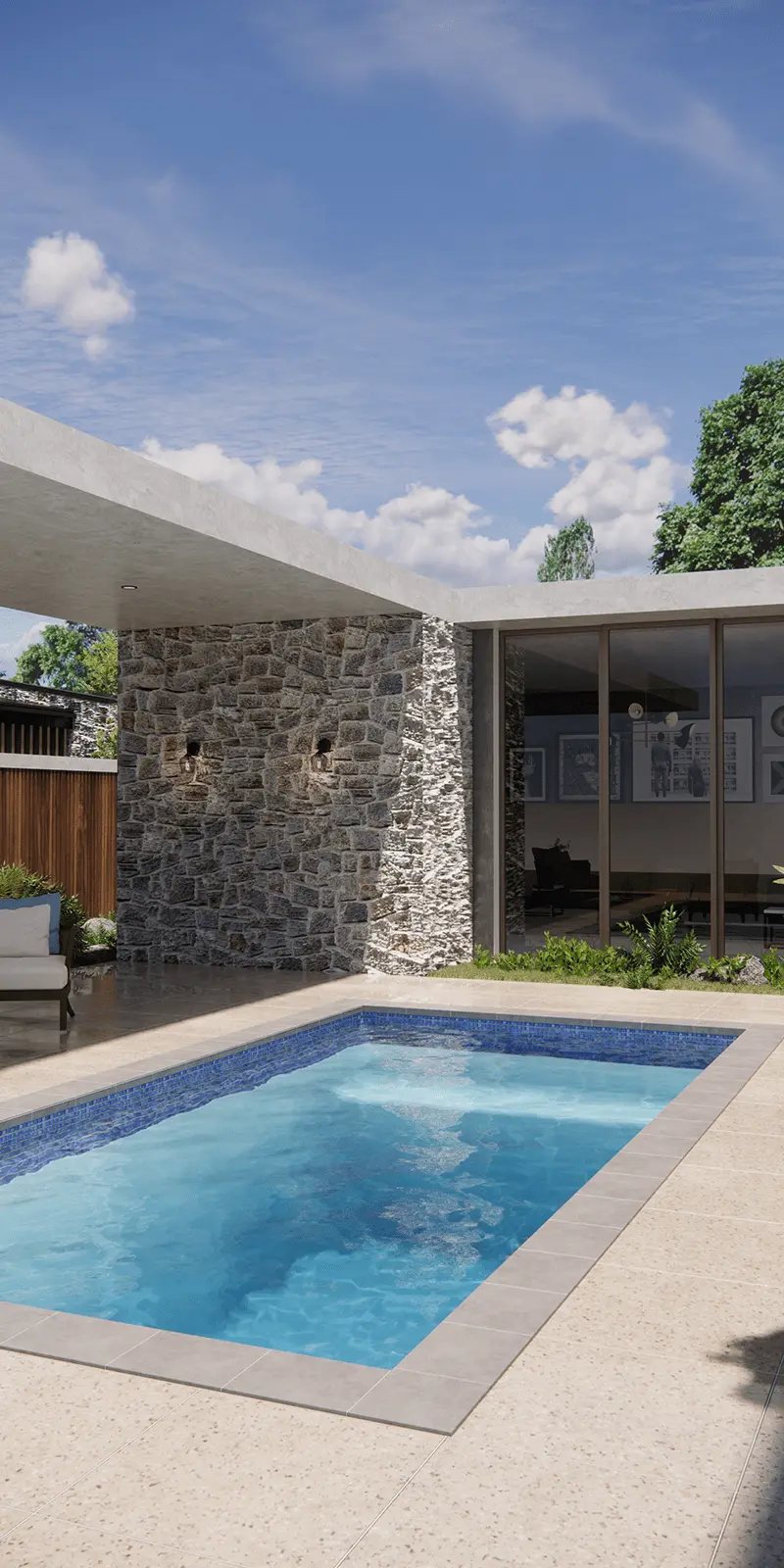 Playa Del Carmen A 23-foot tiled mosaic fiberglass pool with tanning ledge, fresh style, and low maintenance. View Details
